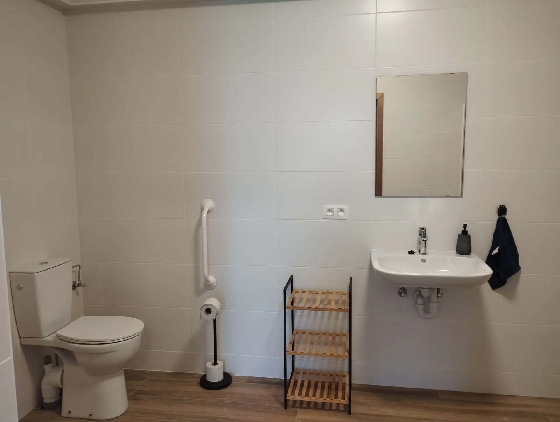 hall, WC, cuisine équipée, salon, salle à manger, buanderie, chambre 1x2pers et sdb adaptée PMR, douche, lavabo, wc