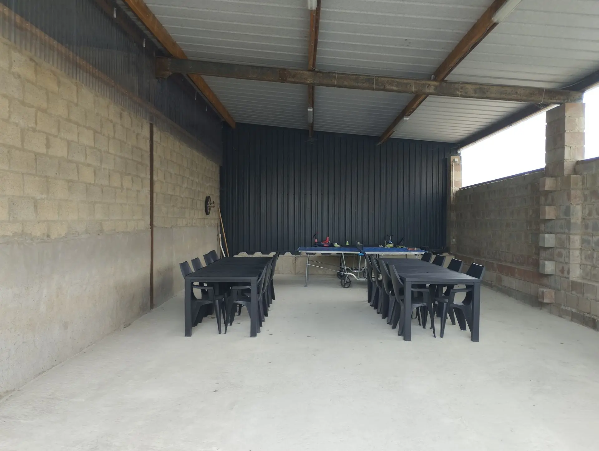 parking privé, pelouse, terrasse, jeux d'extérieur pour enfants, ping-pong, jeu de fléchettes, terrain de pétanque, barbecue, zone couverte.